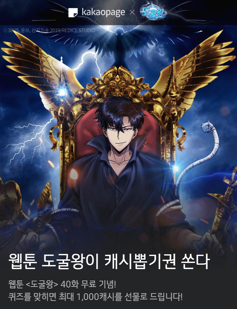 웹툰 도굴왕 파산왕 카카오페이지 캐시 뽑기권 정답은 비즈엔터