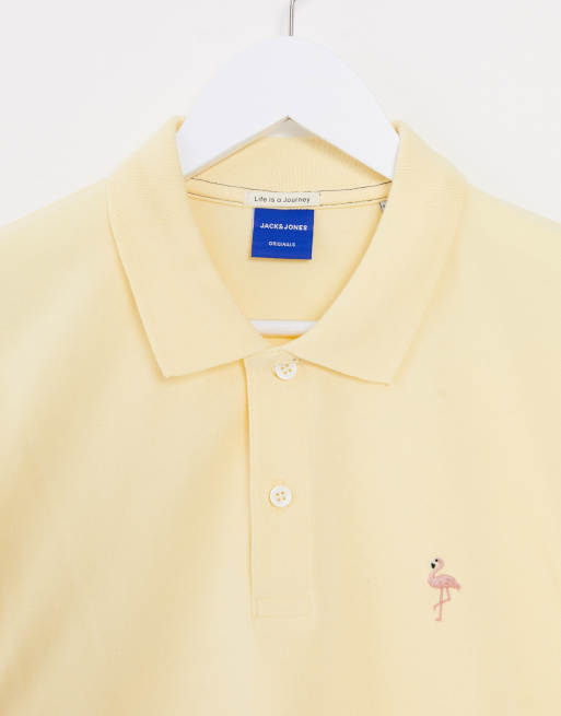 Jack Jones Originals Polo Shirt With Flamingo Logo In Yellow Asos